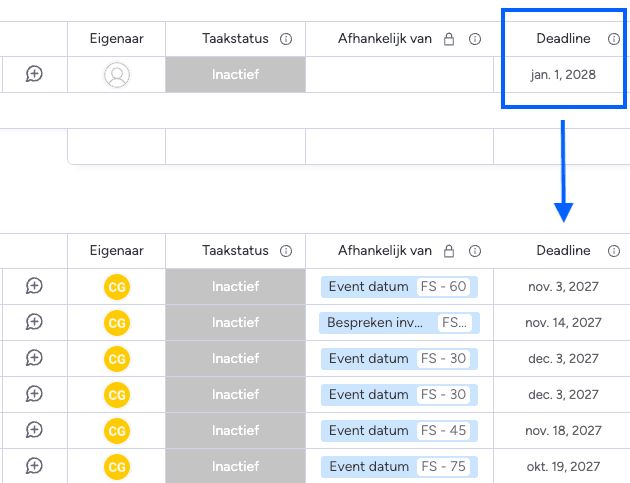 With the selected template, the team can quickly tailor the schedule to fit each event. The ‘Lead & Lag’ feature makes this easy – by simply entering the event date, all related tasks are automatically scheduled at the right time.