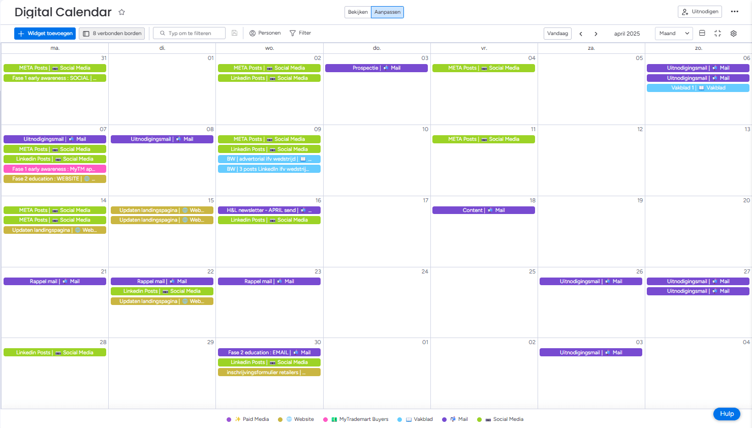 At the request of Trademart’s new marketing manager, the Tryve team created a digital calendar that gives a complete overview of all communication efforts in one place. While individual boards already existed for each channel, there was a need for a higher-level view of all current and completed marketing activities.